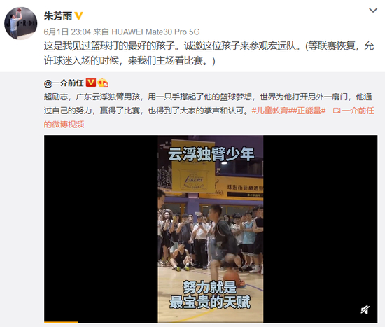 说到好苗子,教主又想起了最近爆火的独臂篮球少年(点这里回顾一下)。他的故事鼓舞和激励了许多热爱篮球的人,广东男篮总经理朱芳雨已亲自发出邀请,欢迎独臂少年来球队参观。