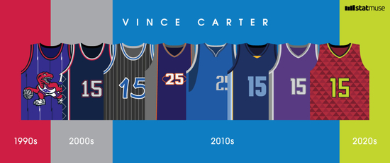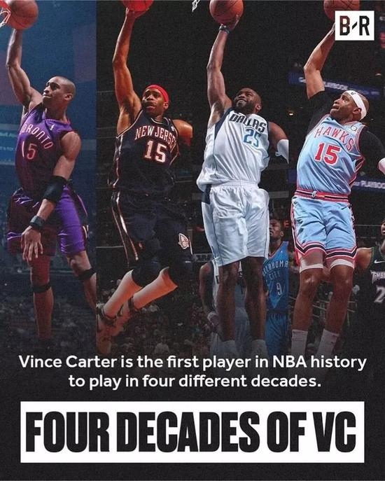 回顾卡特长达22岁的NBA职业生涯,他是NBA历史上唯一一位职业生涯横跨4个十年(1990、2000、2010、2020)的球员。更难得的是,卡特是NBA历史上为数不多的从超级巨星成功转型为角色球员。