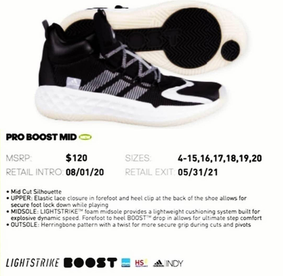 PRO BOOST系列球鞋曝光两款不同的配色发售信息,黑色为中帮版本,红色为低帮版本。从图片中看Mid和Low的差别主要发生在脚踝位置的材料填充上。