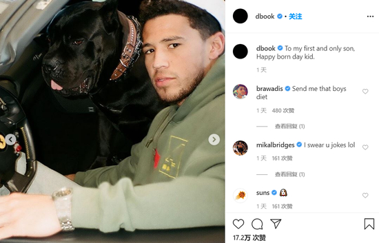 近日,布克在个人ins上晒出自己爱犬的照片,并写道:“祝我第一个也是唯一一个儿子生日快乐。”黄蜂队的布里奇斯随后评论:“我发誓你在逗我。”值得一提的是,该帖子被布克限制评论了。
