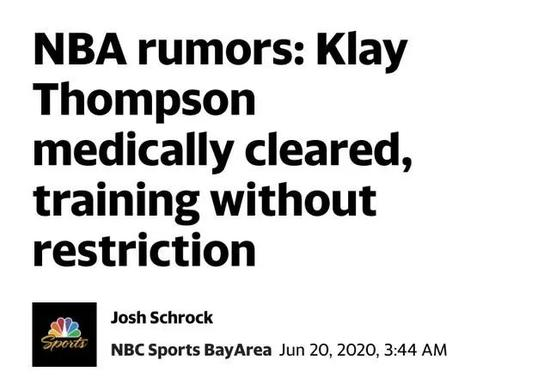 克莱汤普森痊愈了。