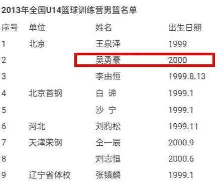 正所谓人红是非多,近日有许多网友在社媒上围攻吴勇豪,质疑他年龄造假,一些自媒体也开始大肆报道,令其被推上风口浪尖!原来不知从哪流出了一份U14训练营的名单,上面写着吴勇豪出生于2000年,按这样计算他今年已经20岁了。
