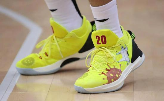 作为AJ品牌首位亚洲区代言人,随着签约的推进,郭艾伦也拥有了稳定的品牌资源。复赛的首场比赛郭艾伦上脚了 AJ34 Low 个人PE配色 。