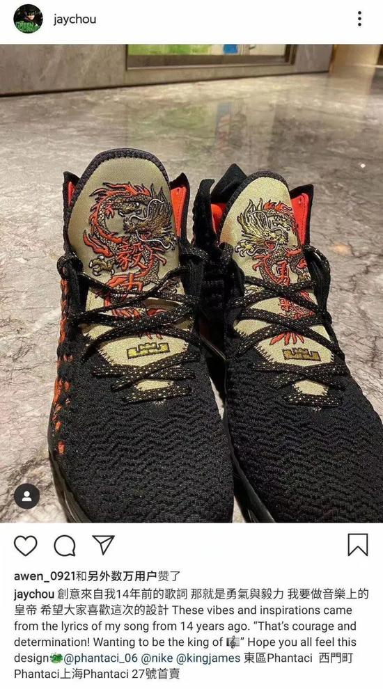 也因此,外国的球鞋媒体也不会对周杰伦有任何报道,基本只有周杰伦的INS粉丝才知道,这是Jay自己的品牌和LEBRON 17联名。
