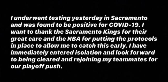 国王中锋自曝新冠检测阳性 已进入自我隔离