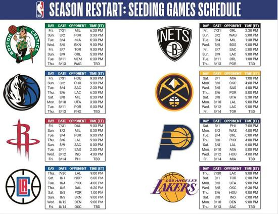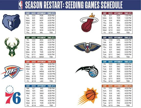 在今天的早些时候,NBA官方正式公布了复赛之后的常规赛赛程。联赛将于北京时间7月31日重新开启,常规赛会一直进行到8月15日。