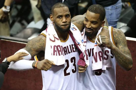 对于詹姆斯来说,JR绝对不陌生了,两人曾经在骑士当过将近四年的队友,四年时间,骑士全部打进了总决赛,并且拿到了一座总冠军——JR在夺冠路上功不可没,2016年总决赛骑士赢球的四场比赛里,JR场均可以拿到14.0分,一共投进了12记三分。