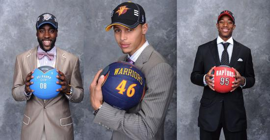 2009年也是星光熠熠的一届:格里芬状元秀,在塔比特之后,哈登成为探花被雷霆选走。国王第四顺位选中埃文斯,森林狼第五顺位摘走卢比奥,勇士第七顺位选中库里,猛龙第九顺位选中德罗赞。
