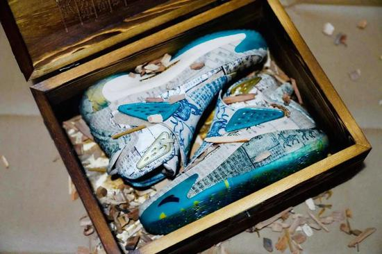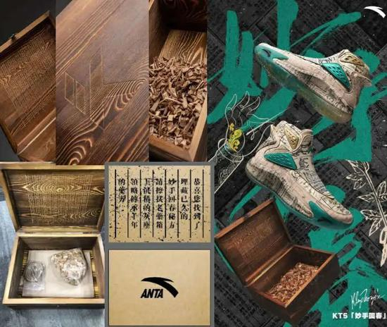 所以妙手回春配色是早有计划,在安排时间充裕的情况下,这双球鞋在细节打造方面必定非常完善。鞋盒采用了木质材料,打开鞋盒会有两包药材。这样的设计灵感也来源于我们中医取药时经常看到的药匣。