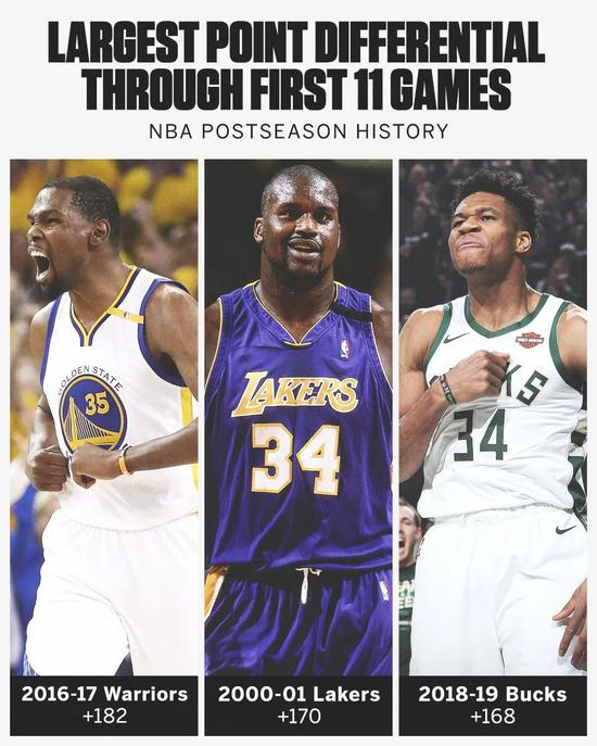 NBA历史上能在该赛季头11场季后赛打出11-0的球队很少,01湖人和17勇士就是其中的两支。