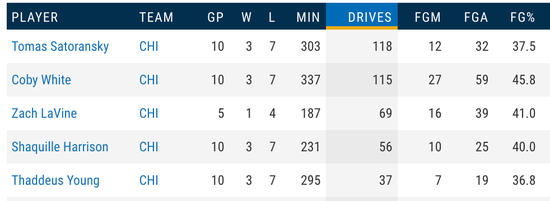 怀特是本赛季公牛完成转换反击次数第二多的球员,仅次于拉文。他总共完成456次突破排全队第三,但如果是从全明星后开始计算,那么完成了115次突破的怀特可以排到第二,只比第一的萨托兰斯基少3次而已。