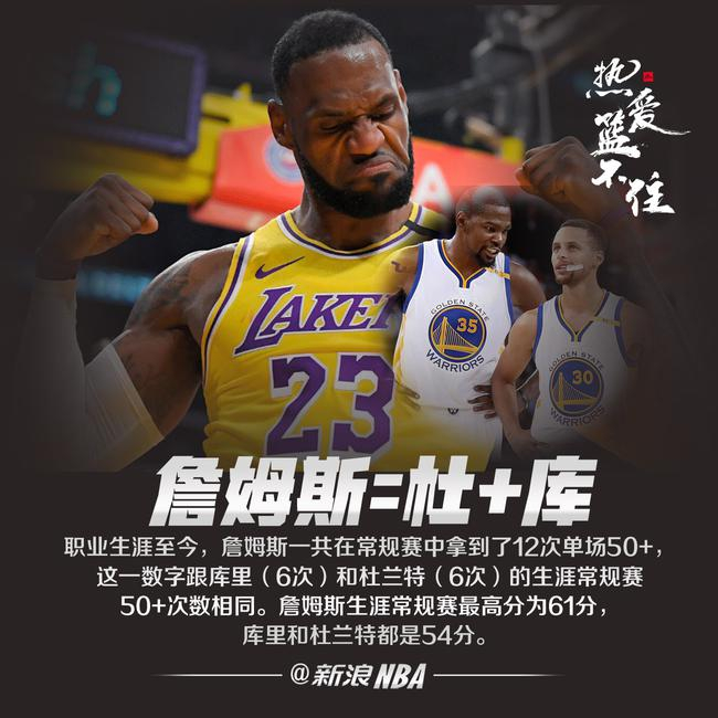 北京时间7月27日,詹姆斯不是一个得分手?他职业生涯至今常规赛单场得分50+的场次,一共有12次,这个数字,跟库里和杜兰特职业生涯单场50+的总数一样。