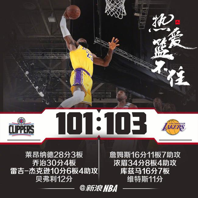 北京时间7月31日,NBA常规赛恢复比赛,洛杉矶德比战在奥兰多进行,湖人以103-101险胜快船
