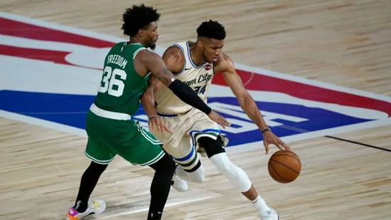 通过这些镜头,其实你也可以看到,如果给字母配以更好的支配球选手,他的无球价值应该还是有非常大的提升空间的。再具体说回到这场比赛,字母空手移动所带来的牵制力,也颇具战术价值。