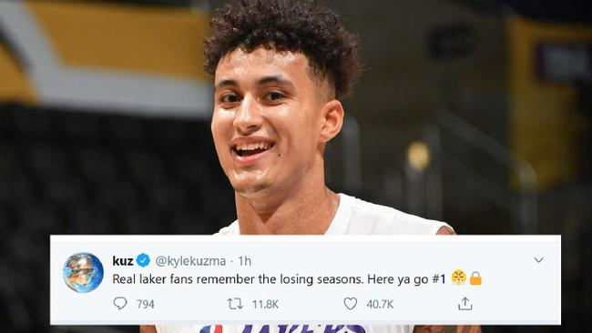 “真正的湖人球迷,会记住过去这些个失败的赛季。”库兹马写道,“西部第一,这是送给你们的。”
