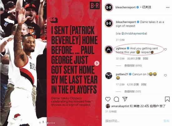而美媒B/R也是看热闹不嫌事大,以利拉德的言论作为主题弄了一张照片,并配上他挥手告别对手的动作。