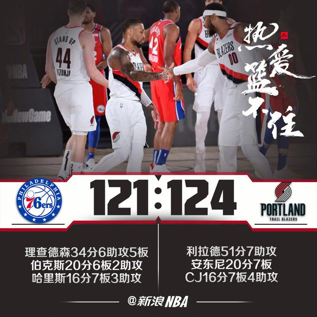 利拉德三分球前8投仅1中,关键时刻仍找回了感觉,又一次三分命中后,开拓者完成12-0的攻击波。尽管76人又将差距缩小到1分,但为时已晚。