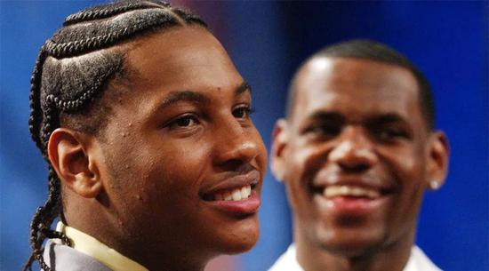 2003年选秀,18岁的詹姆斯留在了俄亥俄州,19岁的甜瓜则远赴科罗拉多,他们第一次相遇的地方。