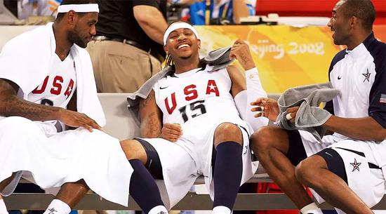 2008年奥运之旅开启前,澳门集训,詹姆斯和甜瓜、韦德从浴室坦然走出的场景被狗仔队拍个正着,风尘三少就此名扬天下,到后来香蕉船上卿卿我我,他们已经不再那么年轻。