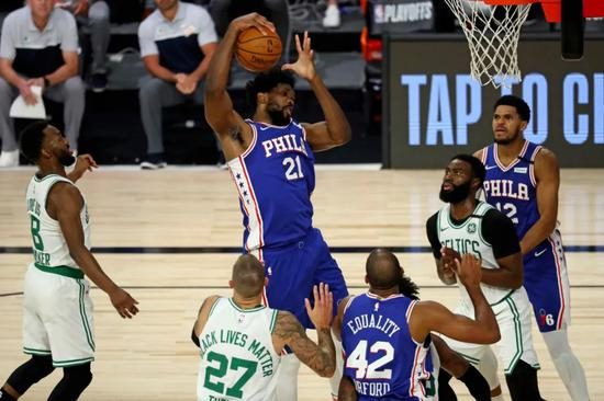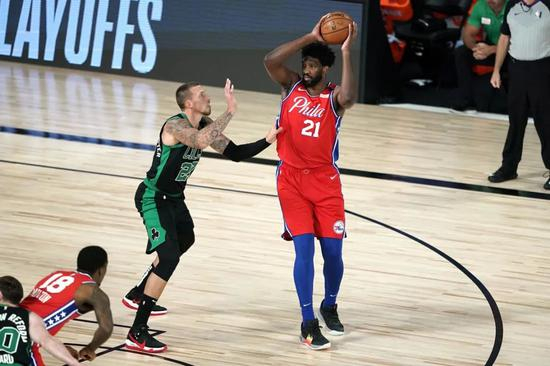 恩比德看似是重型中锋,但其实是个大号得分后卫,中距离投射才是他的主要得分手段,而这恰恰没有打到凯尔特人防守的痛处。