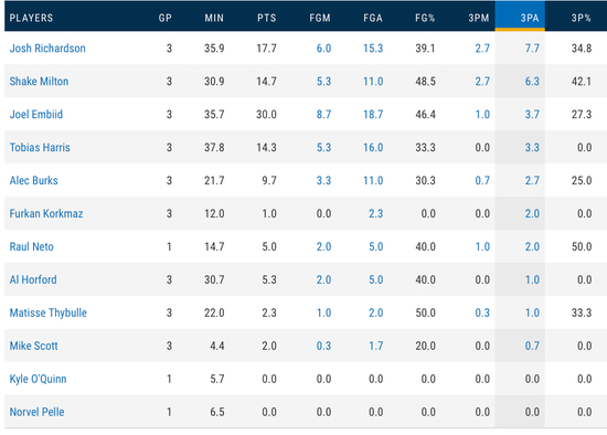 纵览整个系列赛,76人球员都没有校准他们的投射准星,在这样一个三分球约等于生命线的篮球时代,一支三分球命中率只有26.4%(联盟最低)的球队,谈何赢球呢?