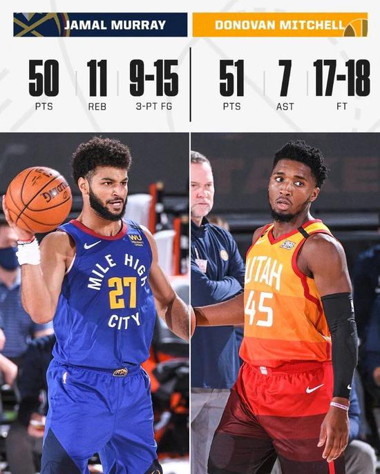 爵士后卫多诺万-米切尔,入账51分4篮板7助攻。