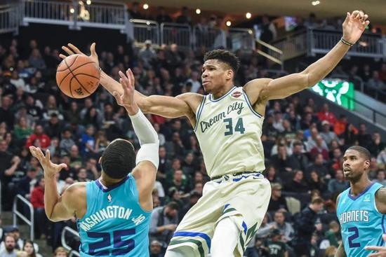 因为字母哥是出色的篮板手,有他在的时候,球队被对手打转换进攻的比例也比他不在的时候低2.8%。