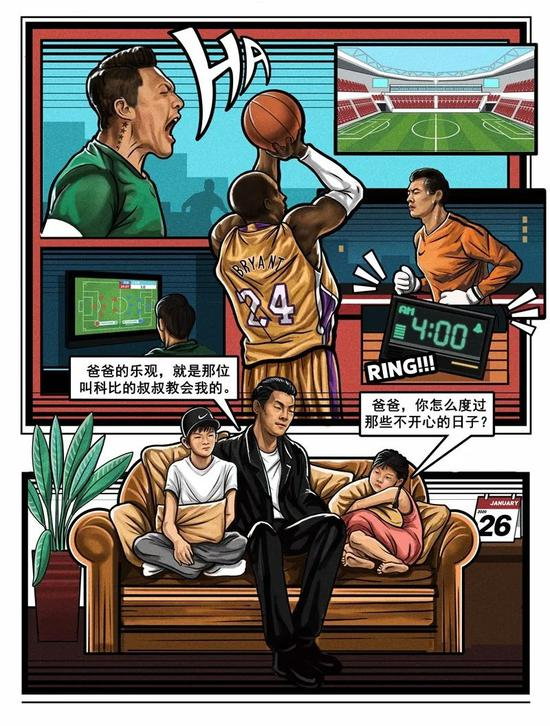 “今年1月26日那天,你问爸爸,科比叔叔怎么了。当时,爸爸还没想好要跟你说什么。因为对你来说,那是一个跟爸爸一样,找不出一根没变形的手指的叔叔。而对于爸爸,那是在爸爸的青春里,伴随我很多年,时时给予我信念和力量的偶像。”