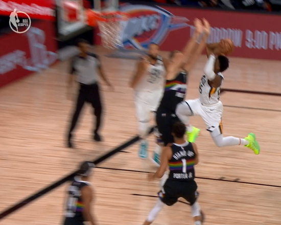 这一球打完,米切尔懵逼了,爵士球员懵逼了,就连掘金球员都懵了。
