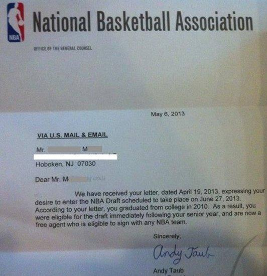 上文提到了,鸟人因为不了解选秀规则,奇葩的错过了选秀大会,那参加选秀的规则是什么?达到联盟规定的年龄,只要提前45天向联盟递交报名申请,基本上都能够进入联盟的选秀名单,没错,就是这么的简单,那普通人可不可以呢?答案当然是可以,在美国一位名叫范因斯坦的普通人就因为室友的一句玩笑,便通过寄信的方式报名参加了08年的选秀,要知道这位不仅身高只有1米72,没打过篮球,甚至连球迷都算不上的普通人还真在4月份收到了联盟寄来的申请表格,在填好表格寄回联盟之后,范因斯坦还真的在08年选秀参选名单中找到了自己的名字,而且这么做的还不止他一位。