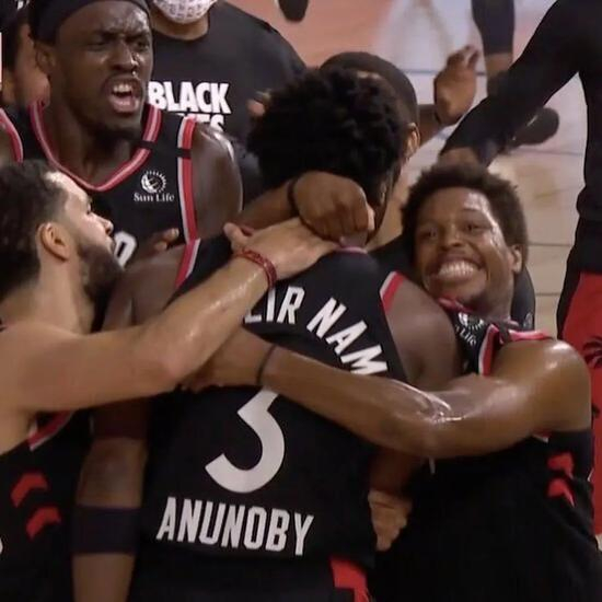 刹那间绿凯球员呆在原地,而经裁判回放反复确认后,认定进球有效,球离开阿奴诺比手指尖的时候还剩0.1-0.2秒,猛龙用如此戏剧性的方式强行续命!要知道1-2和0-3,那可是天差地别!!