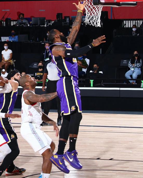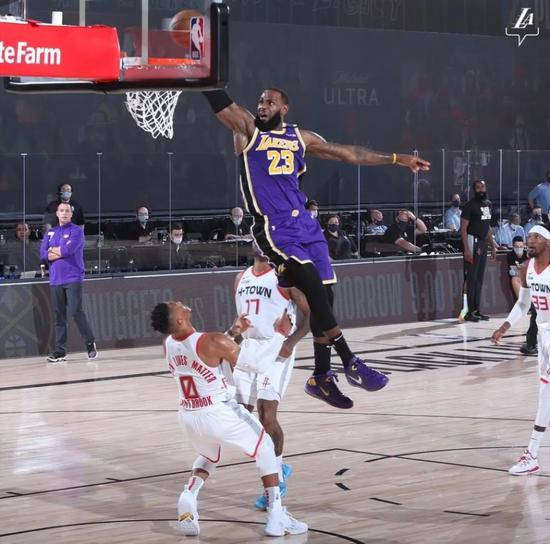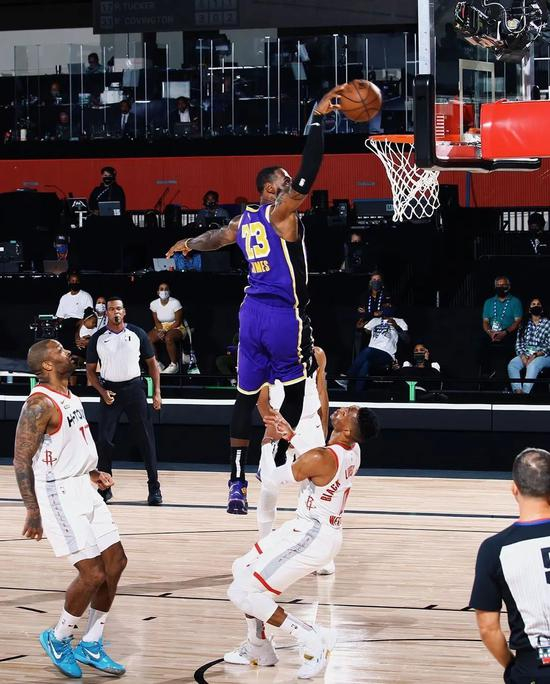 浓眉内线打中,火箭还击三分,浓眉又转身跳投打进,詹姆斯造犯规两罚全中,此时湖人71-74火箭,老詹下场休息。
