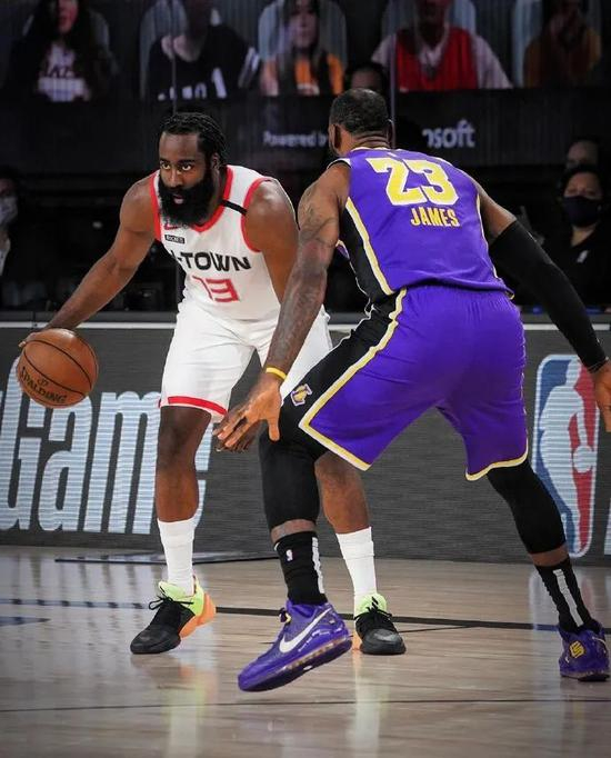 卡鲁索造犯规两罚全中后,詹姆斯下场,隆多浓眉上来。浓眉面对哈登翻身跳投打进,哈登又连续造犯规四罚三中,随后浓眉高难度挑篮打进。