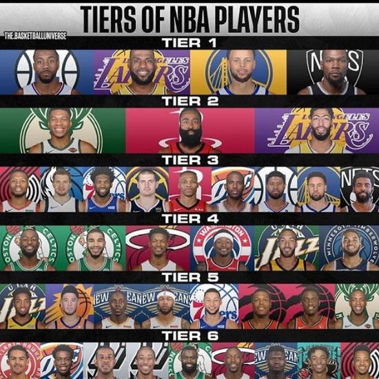 第二档,哈登、字母哥、浓眉哥三人入选还是十分合理的。三个人实力强劲,都是可以载入历史的明星球员,但缺少硬核的荣誉,这或许也是排名在第二档的原因吧!