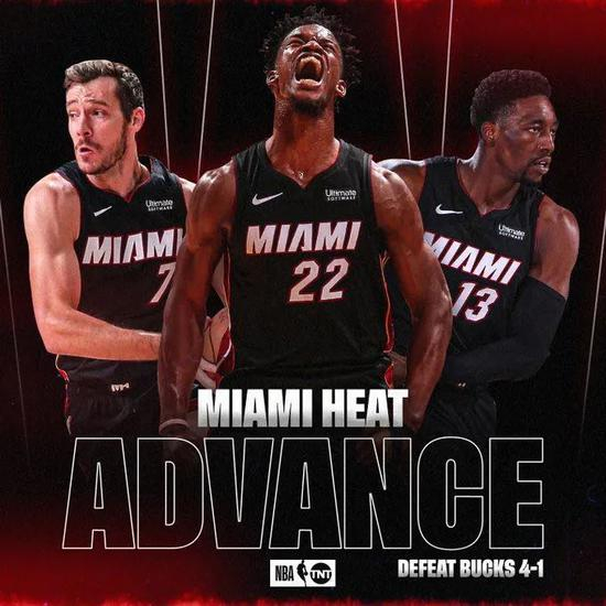 迈阿密热火,东部第五,以4:1的总比分淘汰了联盟第一的密尔沃基雄鹿。时隔6年,再次杀回了东部决赛。