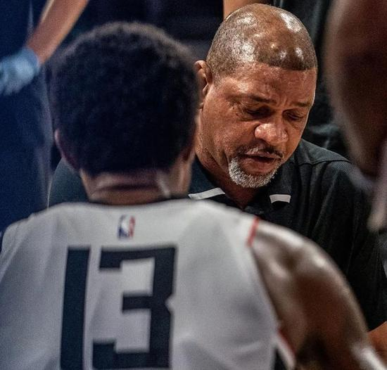 结果掘金登场以后,打成了一个三角进攻,而那头的里弗斯,则一顿给球员灌鸡汤。。。。。。