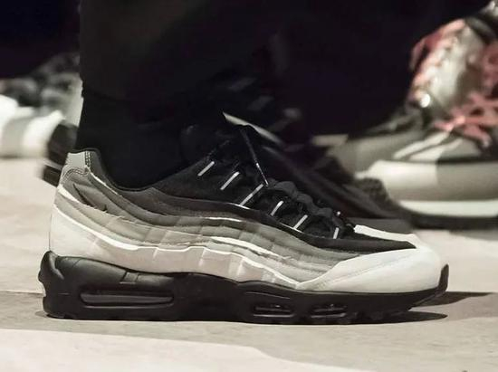 COMME des GARÇONS在与Nike合作了Shox TL的第二年,同样作为品牌巴黎时装周秀场的鞋款,双方又带来了这款Comme des Garçons x Nike Air Max 95。维持了川久保玲一贯的设计风格,此次合作依然采用了解构风格作为鞋款主要设计方向的呈现,将原本Air Max 95鞋身的线条缝合设计调整为了外露的海绵包裹、过长磨损的薄纱布料和看似未完成的缝线效果,并在细节处加入了3M反光元素。作为COMME des GARÇONS与Nike的合作宇宙中的一份子,这款Air Max 95很好的继承了系列的审美方向,也体现了球鞋更多的可能性。但最终在市场上的传播度却与该系列合作本身的价值大相径庭,二级市场的价格也几乎与发售价持平。