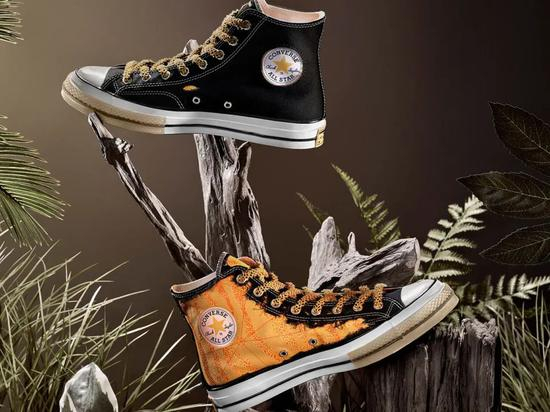 Converse多次与Dr.Woo的合作都搭载于经典鞋款Chuck Taylor 70上。Dr.Woo将鞋身的帆布作为载体,将他的纹身艺术带到了鞋面上。2018年‘撕撕乐’形式的球鞋还不像现在这样常见,但却被Dr.Woo运用到了All Star上,黑色外层布初期便带有不规则缺口,撕开后底层的明黄色帆布给整双鞋带来了更多的视觉冲击,再加上鞋头胶面的Dr.Woo经典眼睛标识,使整双鞋细节满满。此外,另一鞋款则在表面运用了凸起刺绣工艺,精细的蜘蛛纹样的刺绣与皮质鞋舌上的蜘蛛网刻印相呼应,使纹身艺术的风格与球鞋相结合。但目前在市场上,该鞋款的曝光度却并无期望的那样高,尽管二级市场价格稍高于发售价,但却是有价无市。
