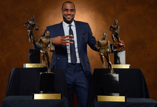 都知道,詹姆斯是现役联盟最有统治力的球员。过去15个赛季,他几乎每一年都在MVP的讨论范围,并且也成功拿下4座MVP,数量排在历史第三,只比贾巴尔(6座)、比尔拉塞尔(5座)、乔丹(5座)少。