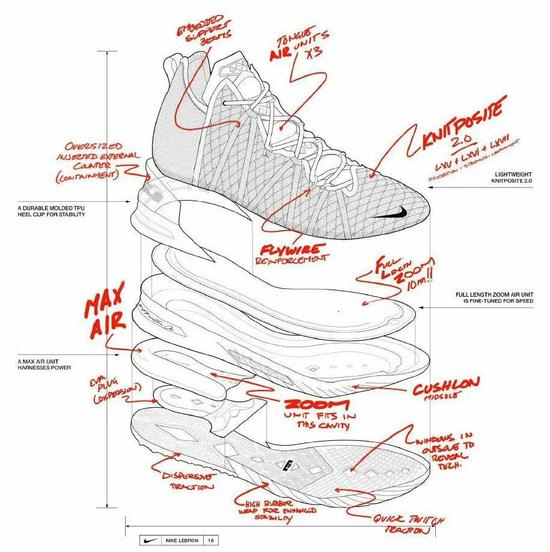设计师杰森。佩特里以前掌速度后掌力量的“一半一半”理念,设计了詹姆斯个人第十八代签名篮球鞋。