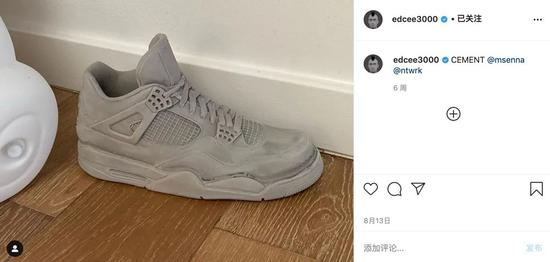 冠希晒出的水泥 Air Jordan 4 其实是出自美国洛杉矶艺术家 Matthew Senna 之手。