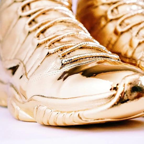 如今每一尊球鞋雕像的售价都接近$10000美元,最贵的一件 24K 纯金 Air Jordan 1 更是卖到 $25000 美元的天价。