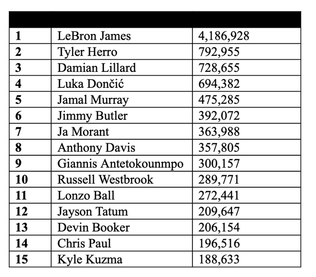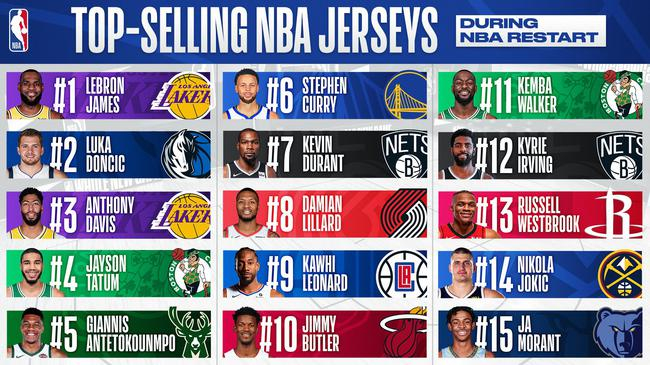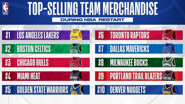 北京时间10月1日,NBA官方公布了三份复赛之后的榜单,分别为球衣销量榜、球队商品销量榜、粉丝数增量榜。湖人和詹姆斯成为最大赢家。