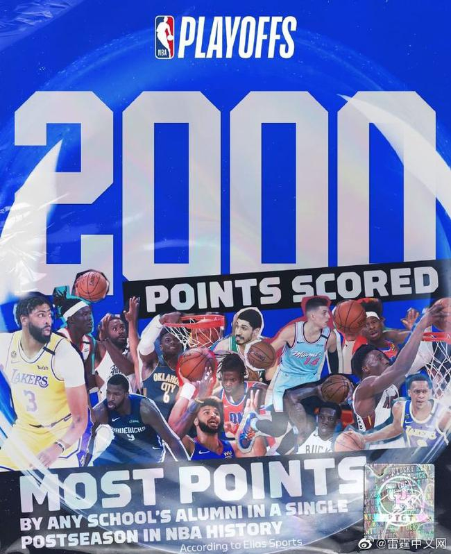数据显示,肯塔基大学出来的球员,已经在今年季后赛中合计砍下了2000分,创造了一个历史纪录,出自一所大学的球员单赛季季后赛中总得分的历史新高。要知道,这总决赛可是还没打完呢,浓眉和希罗以及可能后面能复出的阿德巴约,还会让这个纪录再攀新高。