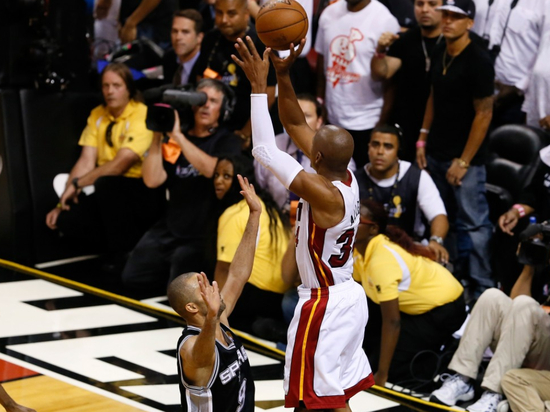 在G7的比赛中,热火在主场以95-88击败马刺,以总比分4-3获得总冠军。雷·阿伦贡献4篮板、4助攻,这是雷·阿伦职业生涯第二次夺得总冠军。