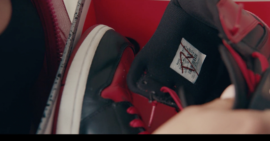 随着剧情的深入,在与Devin、Boddy等一众Sneakerhead们的接触过程中,Stuey也逐渐耳濡目染,了解到更深层面的球鞋文化,并在一次偶然的机遇下找到了Nori离世的父亲曾经拥有,带有名字标记的那双Air Jordan 1 “Bred”,从而间接地体会到通过球鞋去睹物思人的那种奇妙情感。