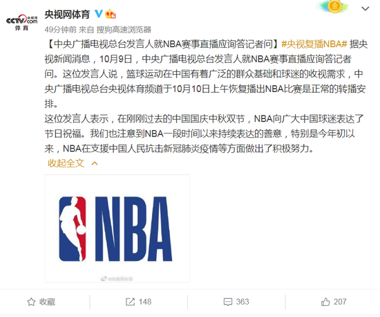 央视宣布决定,NBA回来了,背后意义更加深远
