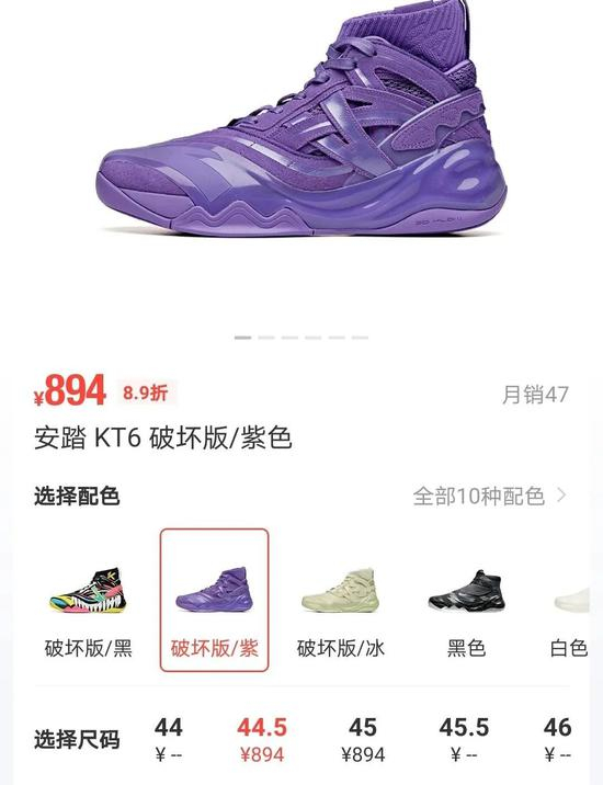 自KT6创下899元的安踏最贵签名鞋纪录之后,KT6破坏版再创新高,官方发售价为999元。根据教主的小道消息,这双鞋可能在双十一前进行发售。不过目前也有不少“偷跑”店家,基本上价格都在900元左右。