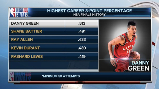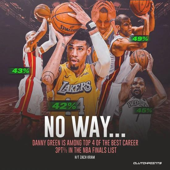 截至到今年G6之前,丹尼-格林在总决赛三分球133投56中,命中率42%,位列NBA历史第四。铁林最近两年下滑明显,在2019年总决赛开打之前,他的总决赛三分命中率超过51%,稳居NBA历史第一。