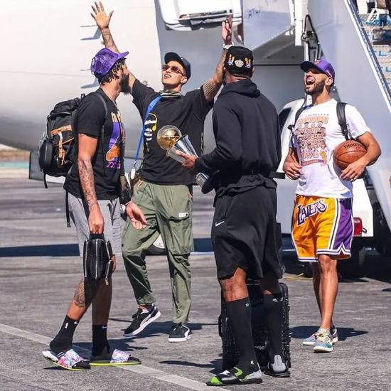 回到酒店后,球员们稍作整理,就在当地开启了小型的庆祝派对。今日早些时候,球员们乘坐了专机,时隔100天再次回到了洛杉矶,受到了球迷的热烈欢迎。